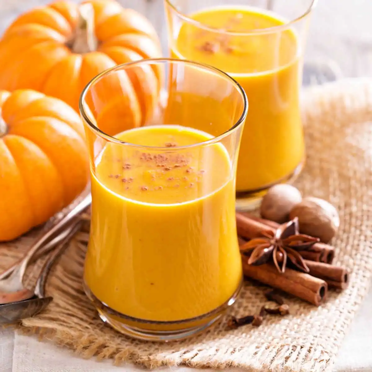 En una licuadora, coloca el puré de calabaza, plátano, leche, yogur (si usas), endulzante, especias y hielo. Agrega también la vainilla y semillas si lo deseas. -